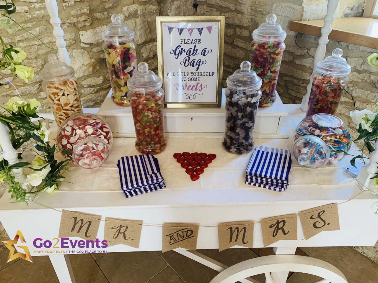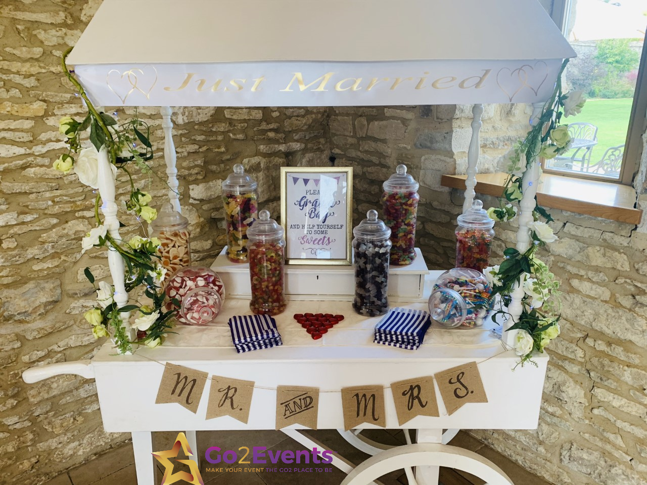 -Here at Go2-events, all of our candy carts are hand crafted and elegantly designed to add a touch of vintage class to your event.