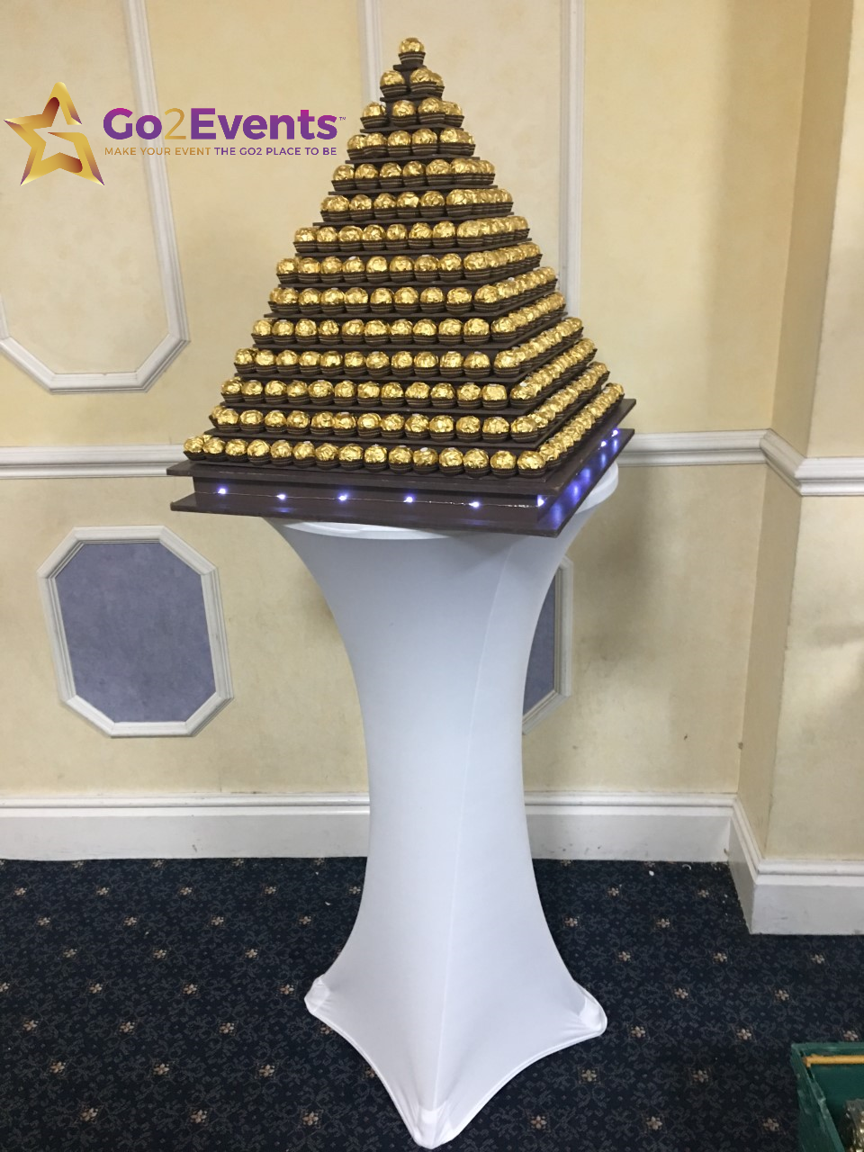 - We have a huge 14 tier Ferrero Rocher Pyramid available to hire which holds 320 Ferrero Rocher chocolates (included)